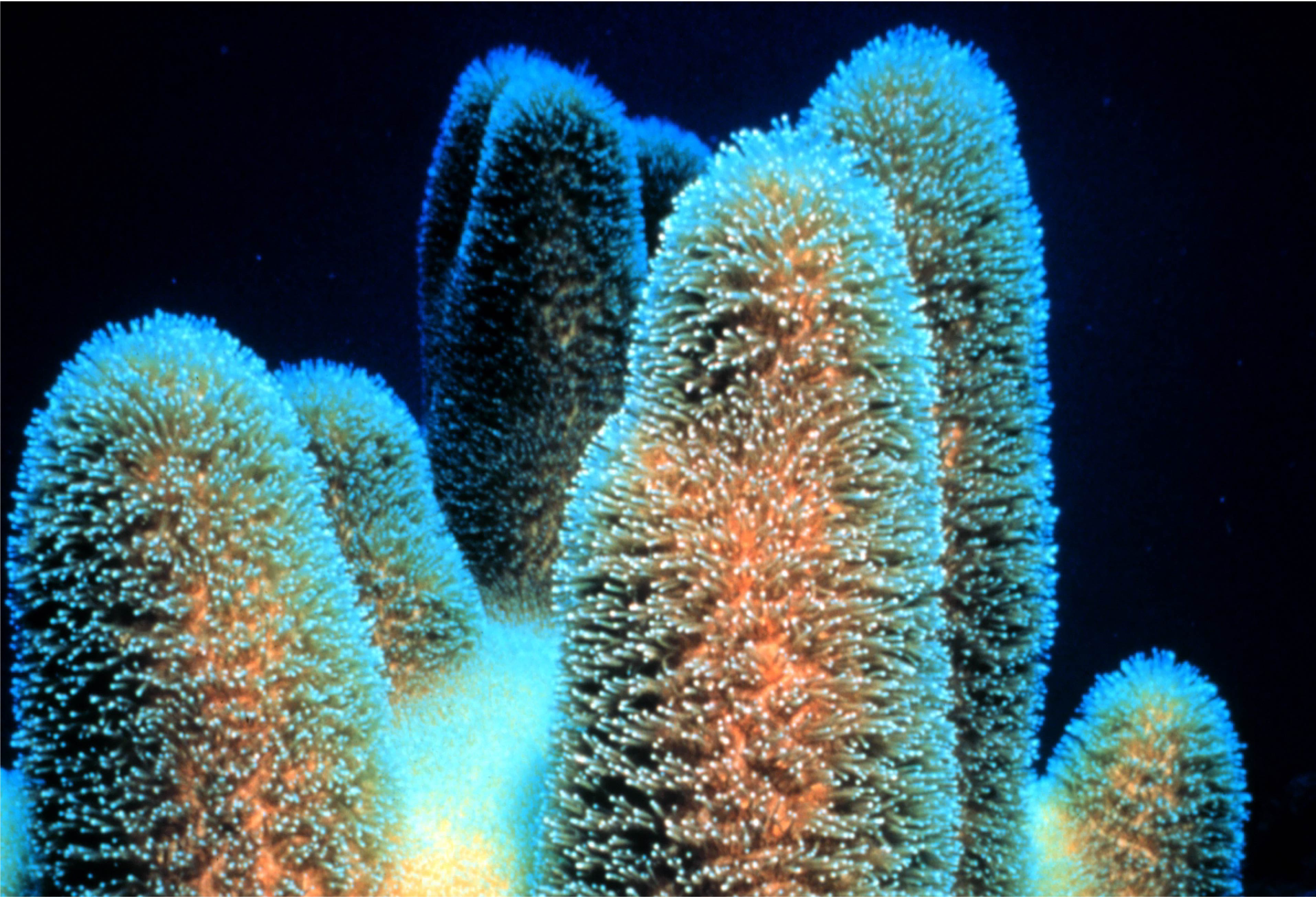 Coral belongs to the class Anthozoa in the animal phylum Cnidaria, which includes sea anemones and jellyfish. Unlike sea anemones, corals secrete hard carbonate exoskeletons that support and protect the coral. Most reefs grow best in warm, shallow, clear, sunny and agitated water. Coral reefs first appeared 485 million years ago, at the dawn of the Early Ordovician, displacing the microbial and sponge reefs of the Cambrian.